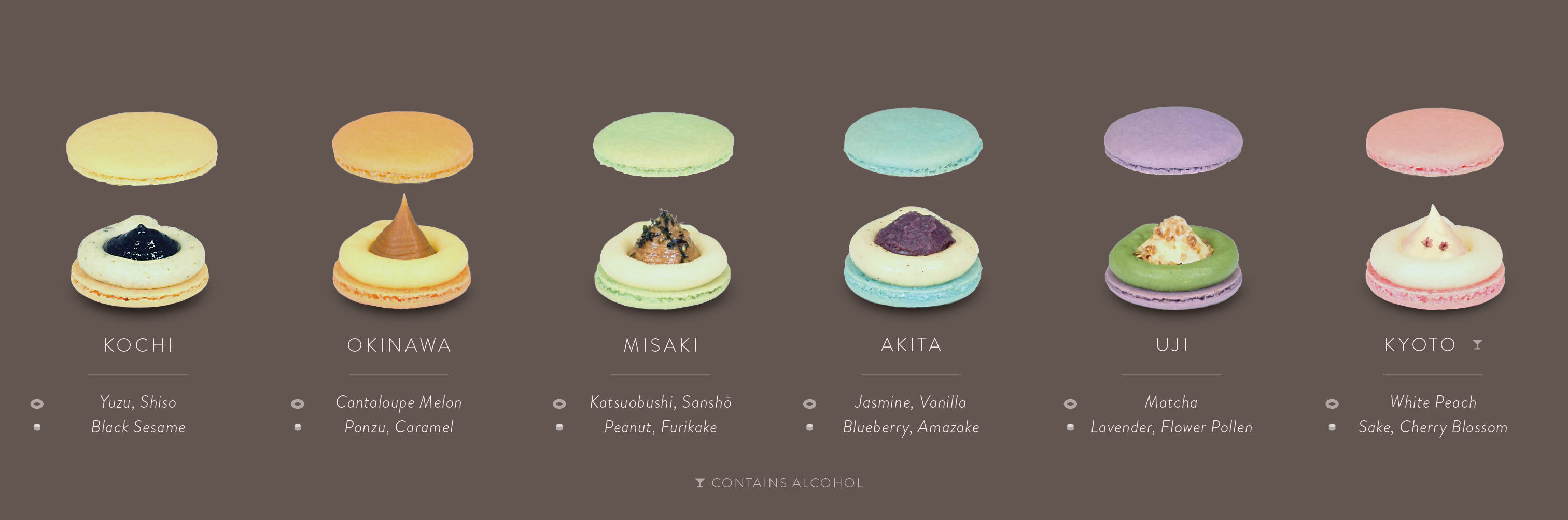 Six macarons, inspired by ingredients that show how even the finest nuances can evoke an entire landscape.